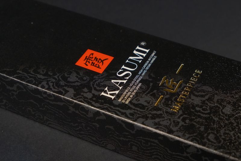 Ponad 800 lat doświadczenia w produkcji ostrzy pozwoliło kuźni Kasumi na stworzenie noży, które na samym początku były dedykowane tylko Szefom kuchni, gdyż jedynie oni byli w stanie docenić niezwykłość tych kling i odpowiednio dużo za nie zapłacić. Z serią noży Masterpiece marka Kasumi wkroczyła do prestiżowego klubu Takumi, zrzeszającego najlepszych japońskich rzemieślników. Seria Masterpiece została uhonorowana znakiem oznaczającym Arcydzieło. Na wszystkich nożach tej serii znajdziemy specjalny znak kanji