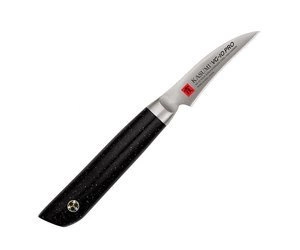 Kasumi VG-10 PRO jest bardzo charakterystyczna dzięki swoim niezwykłym rękojeściom. Wykonuje się je z tworzywa sztucznego przypominającego kamień – marmur, albo granit. Ich kształt sprawia, że nóż trzyma się pewnie i wygodnie. Tym, co najcenniejsze w nożach VG-10 PRO, są jednak ich ostrza. Wykonywane są one ręcznie, w duchu najlepszych tradycji kowali tworzących noże dla samurajów. Każde ostrze powstaje z jednego kawałka stali nierdzewnej VG-10. Posiada ona wysoką zawartość węgla (HRC 60-61) dzięki czemu noże VG-10 PRO pozostają ostre dłużej, niż większość japońskich noży.